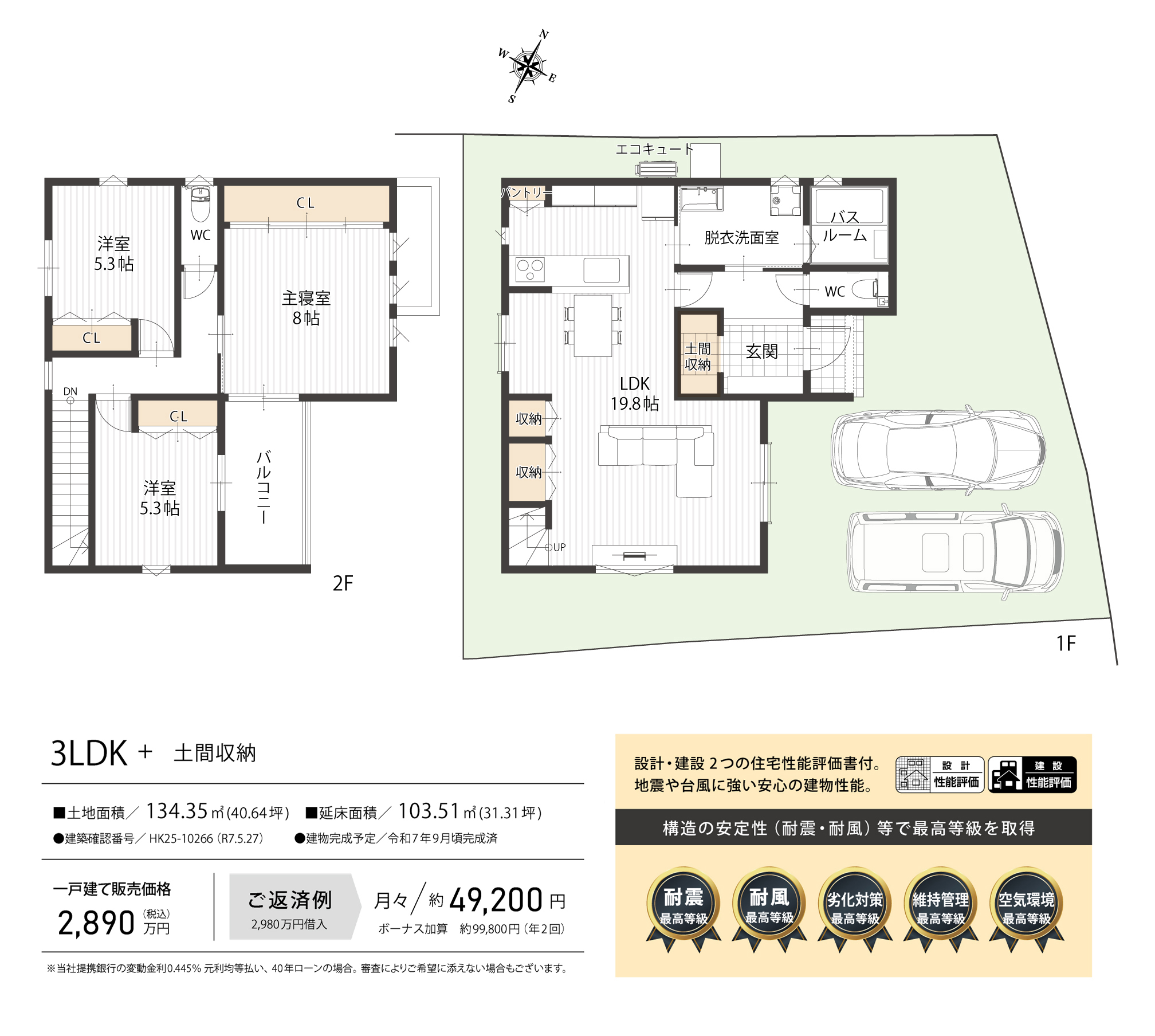■所在/姫路市青山北1丁目■交通/JR姫新線(余部駅)より徒歩約4分■学校区/白鳥小学校、大白書中学校■団地設備/電気、都市ガス、公営水道、排水(汚水・雑排水/公共下水道へ放流、雨水/雨水管)■道路幅員/約5m■私道負担/無■用途地域/第1種住居地域■建ペイ率/60%■容積率/200%■地目/宅地■今回販売戸数/2戸■土地付一戸建て販売価格(税込)/ A号地2890万円、B号地2,840万円■土地面積/134.35㎡、134.37㎡■建物面積/103.51㎡、99.37㎡(30.05坪)■建物完成予定/令和7年7月完成予定■建物構造/木造2階建て■建築確認番号/HK25-10266(R7.5.27)、HK25-10267(R7.5.28)■売主